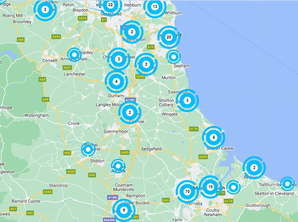 This maps shows the number digital inclusion hubs across the region
